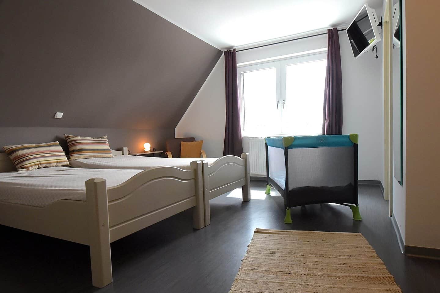 Auf großzügigen 70 m² bietet die Wohnung ausreichend Platz für Ihre erholsame Auszeit. Das Schlafzimmer ist mit einem klassischen Doppelbett ausgestattet, während das zweite Schlafzimmer über zwei Einzelbetten verfügt. Wir heißen auch Ihre vierbeinigen Freunde herzlich willkommen und ihr Aufenthalt ist kostenlos. Bei Bedarf stellen wir Ihnen gerne kostenfrei ein Baby-Reisebett und einen Hochstuhl zur Verfügung.